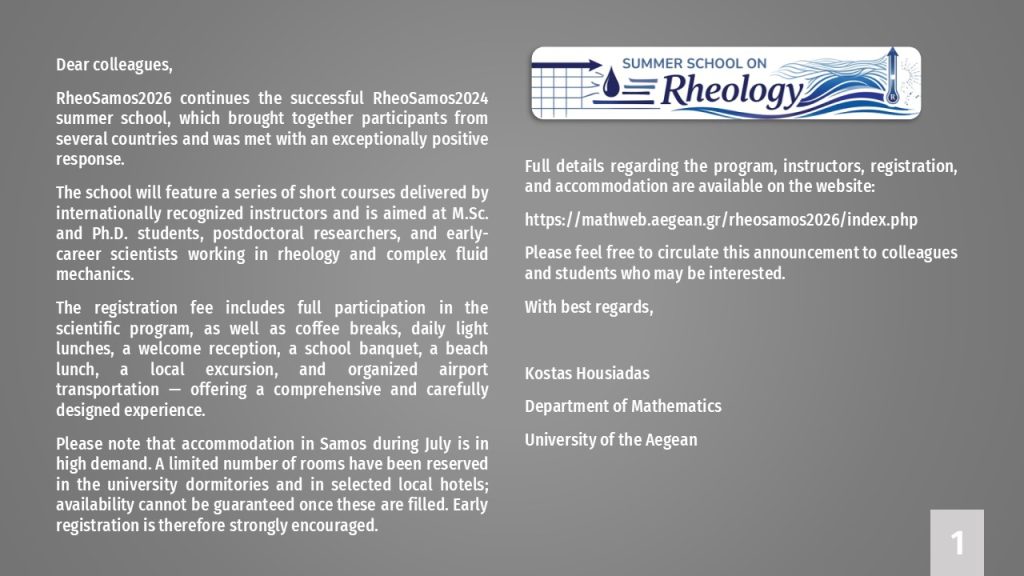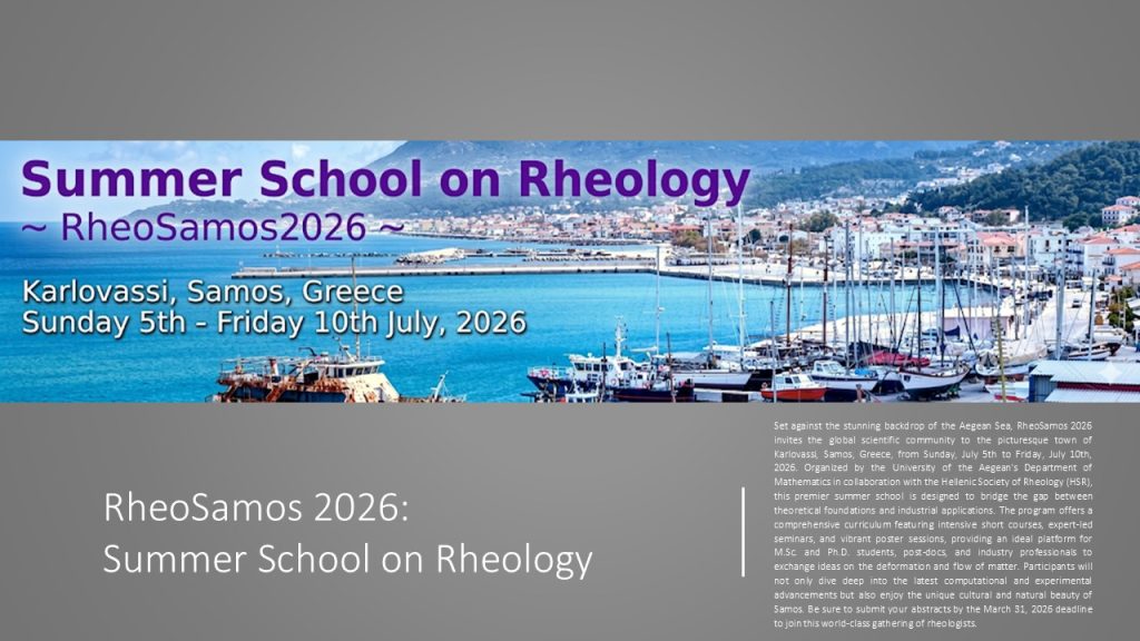 RheoSamos 2026: Summer School on Rheology Play Pause Unmute Mute official website: https://mathweb.aegean.gr/rheosamos2026/index.php